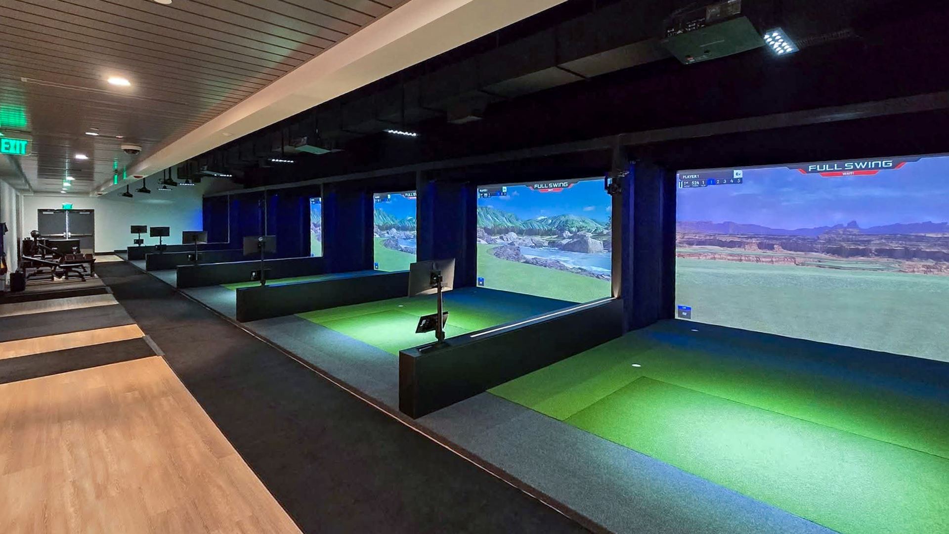 Inside the venue, advanced simulator technology enables the space to bring golf indoors for "Primetime Team Golf." Alongside the simulator, a dynamic short-game complex includes three sand bunkers and three individual 15 feet x 27 feet Virtual Greens within a massive 3,800 square-foot putting surface. The short-game complex is approximately the size of four basketball courts, while the entire playing surface inside the venue (simulator area and short game complex) is roughly the size of a football field.