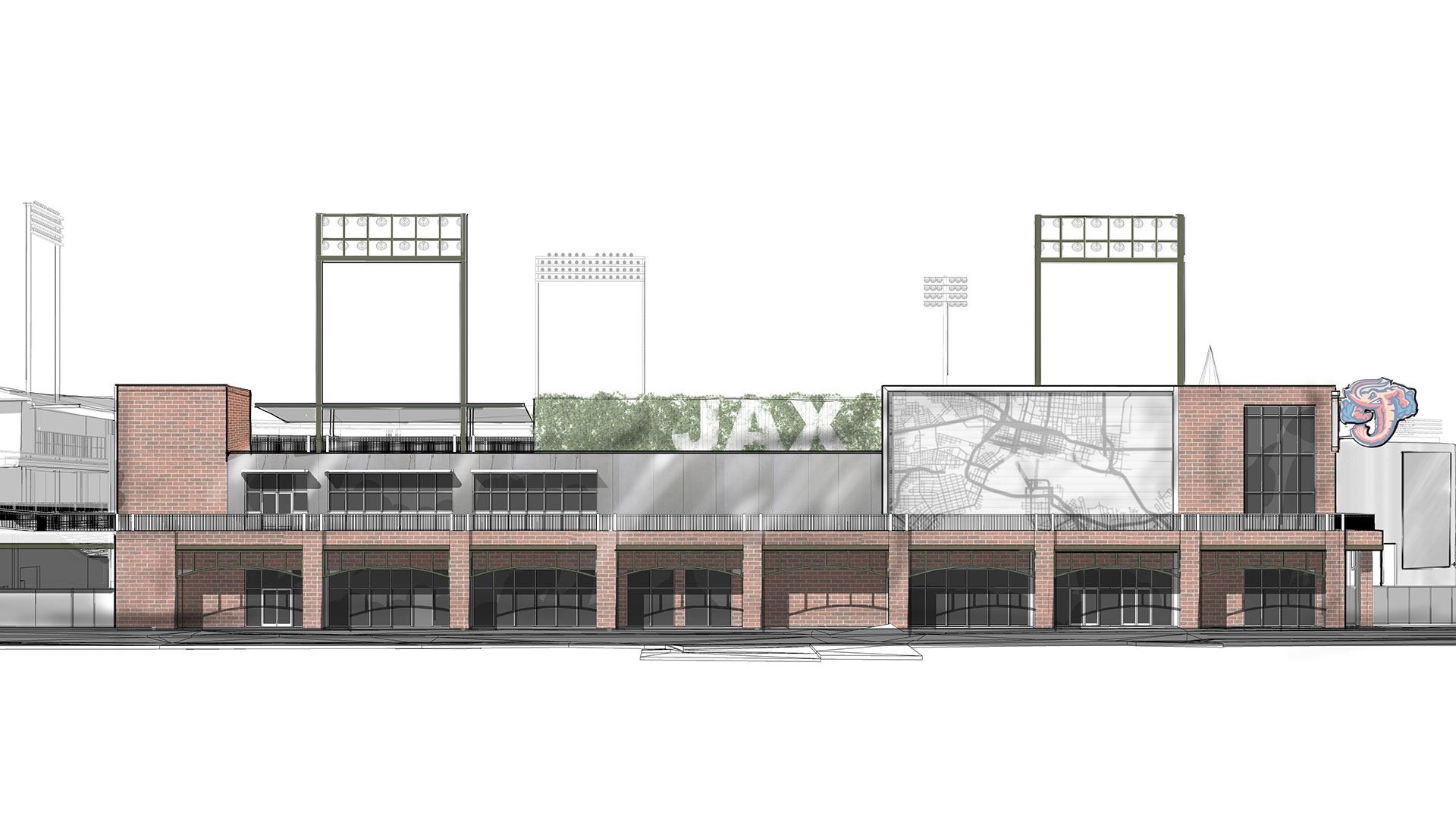 Key features include the new Right Field Building, the PNC Home Plate Club, and the inviting New Center Field Front Porch, positioned as the primary entrance for fans and a focal point of activity. These enhancements will welcome fans to the ballpark in unprecedented ways. The new multi-level building in right-field houses the Jumbo Shrimp VyStar Credit Union Souvenir Store on the street level and offers a versatile space for banquets and meetings on the concourse level, further enhancing downtown Jacksonville’s offerings.